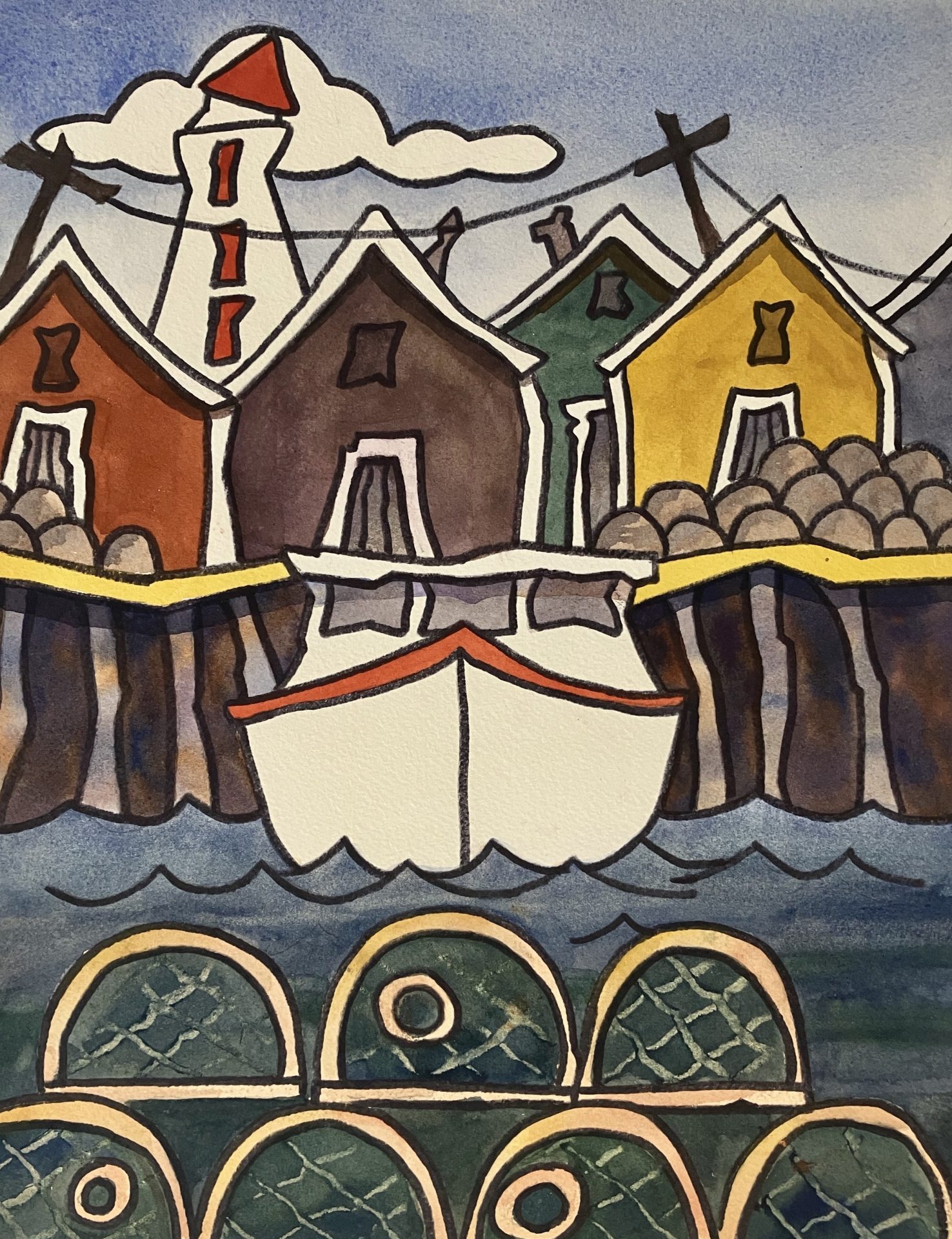 About the Artist: Betty Jenkins is a PEI artist known for her joyful, slightly wonky paintings that celebrate Island life with colour, humour, and seaside charm. Her whimsical take on familiar scenes captures the heart of the Island in a way that feels playful, welcoming, and full of personality.